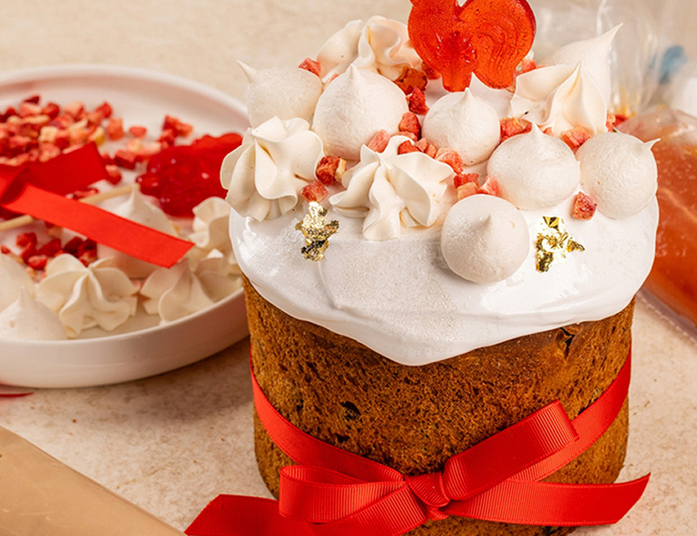 Шеф-кондитер Юлия Джафарова готовит выпечку по авторской технологии на живой итальянской закваске Lievito Madre. В этом году представлены два вида панеттоне: фирменный с грейпфрутом, клубникой и молочным шоколадом, и спешл с цукатами и темным бельгийским шоколадом. Шоколад и цитрус — вечная классика, не правда ли?