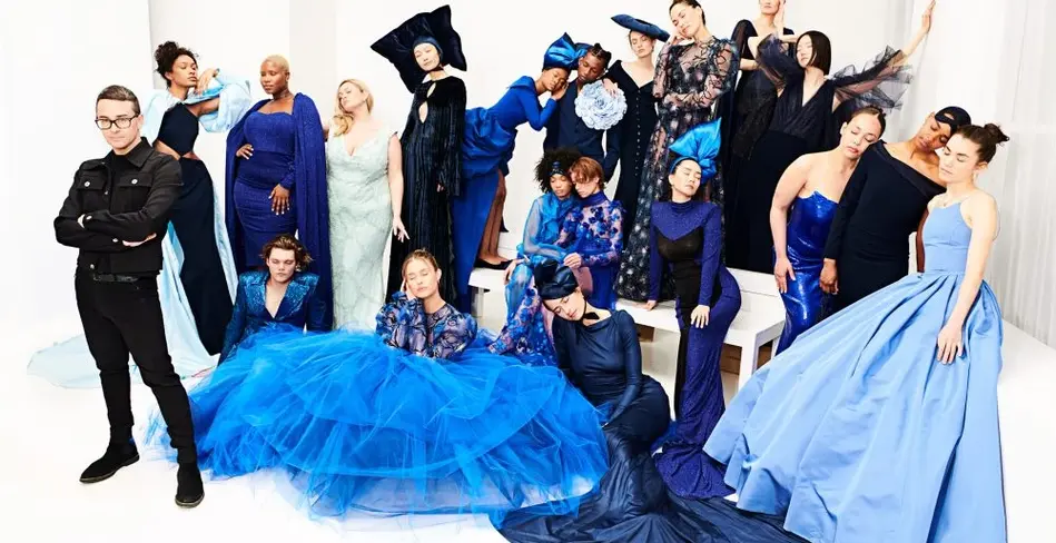 Дизайнер Кристиан Сириано объединился с брендом снотворных Unisom и представил коллекцию нарядов в синих и голубых оттенках.